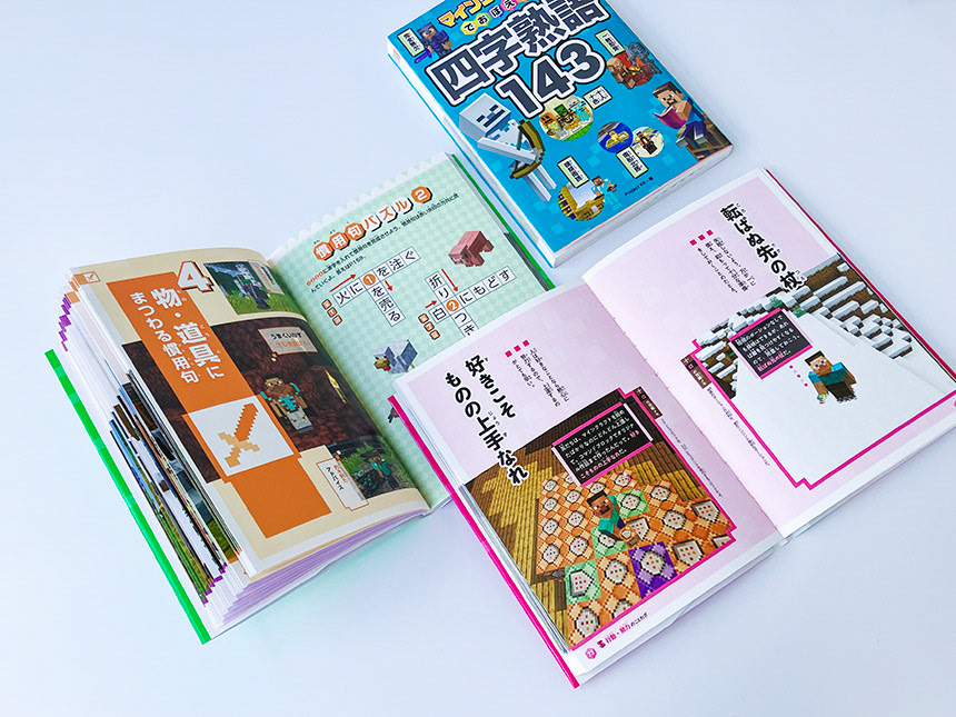 大人気ゲーム・マインクラフトのシーンを楽しみながら熟語や意味をおぼえるシリーズ。